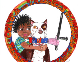 J’ai continué obstinément à faire ce que les enfants sont censés arrêter à l’âge de six ans : de la gouache, du dessin, des collages…Je n’ai pas énormément progressé depuis mais en même temps ce n’est pas ça qui mon métier, alors tes critiques à la con tu te les gardes au chaud sur l’oreille : je ne suis pas artiste, je suis travailleur social.