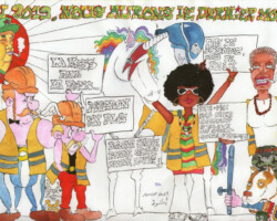 Et comme je suis syndicaliste, j’ai fixé le prix de mes toiles en fonction des heures qu’il m’a fallu pour les réaliser, payées au SMIC. Alors ne te plains pas que mes toiles sont chères et sors ton larfeuille ! Si ça ne tenait qu’à moi le SMIC serait à 1700 euros et tu l’aurais mauvaise…