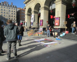 En parallèle de ce rassemblement, nous réalisions un collage géant face à la mairie de Lyon.