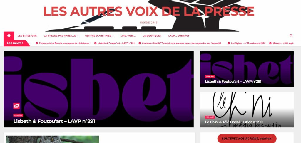 Un grand merci à Jocelyn Peyret, créateur et animateur du média Les Autres Voix de la Presse, qui met en lumière les médias alternatifs et indé à travers son site et ses podcasts.