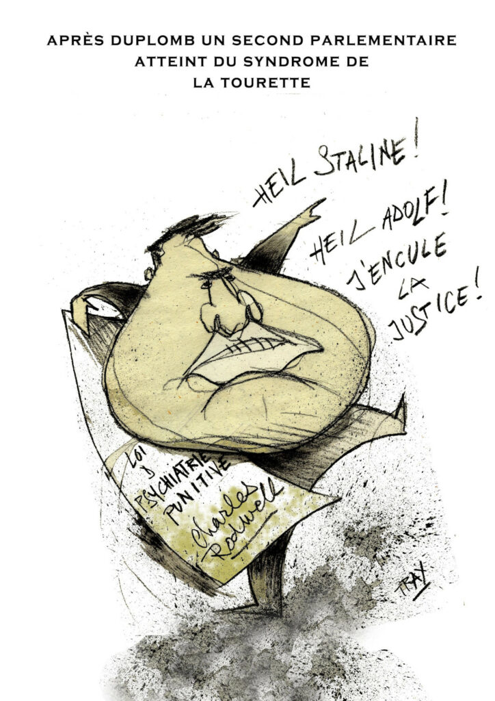 Superbe caricature de Trax qui s’est payé le député Renaissance des Yvelines Charles Rodwell, décidément obsessionnel des lois sécuritaires, à un niveau qui mériterait presque une expertise psychiatrique