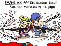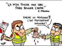 Je me suis lancé dans le dessin de presse lorsque j’étais au lycée, c’était pendant la période des élections présidentielles et je m’étais dit qu’un dessin est toujours mieux qu’un long discours pour commenter l’actualité de manière légère. Ma technique est très simple et ne nécessite pas beaucoup de matériel : une idée, un crayon, un bout de papier et c’est parti. Après, je scanne le tout pour le coloriser sur ordinateur et corriger les petites imperfections. Lorsque je suis arrivé à Lyon, mes premières publications se sont faites dans Foutou’art, et depuis quelque temps, je publie aussi mes dessins dans le Journal International.