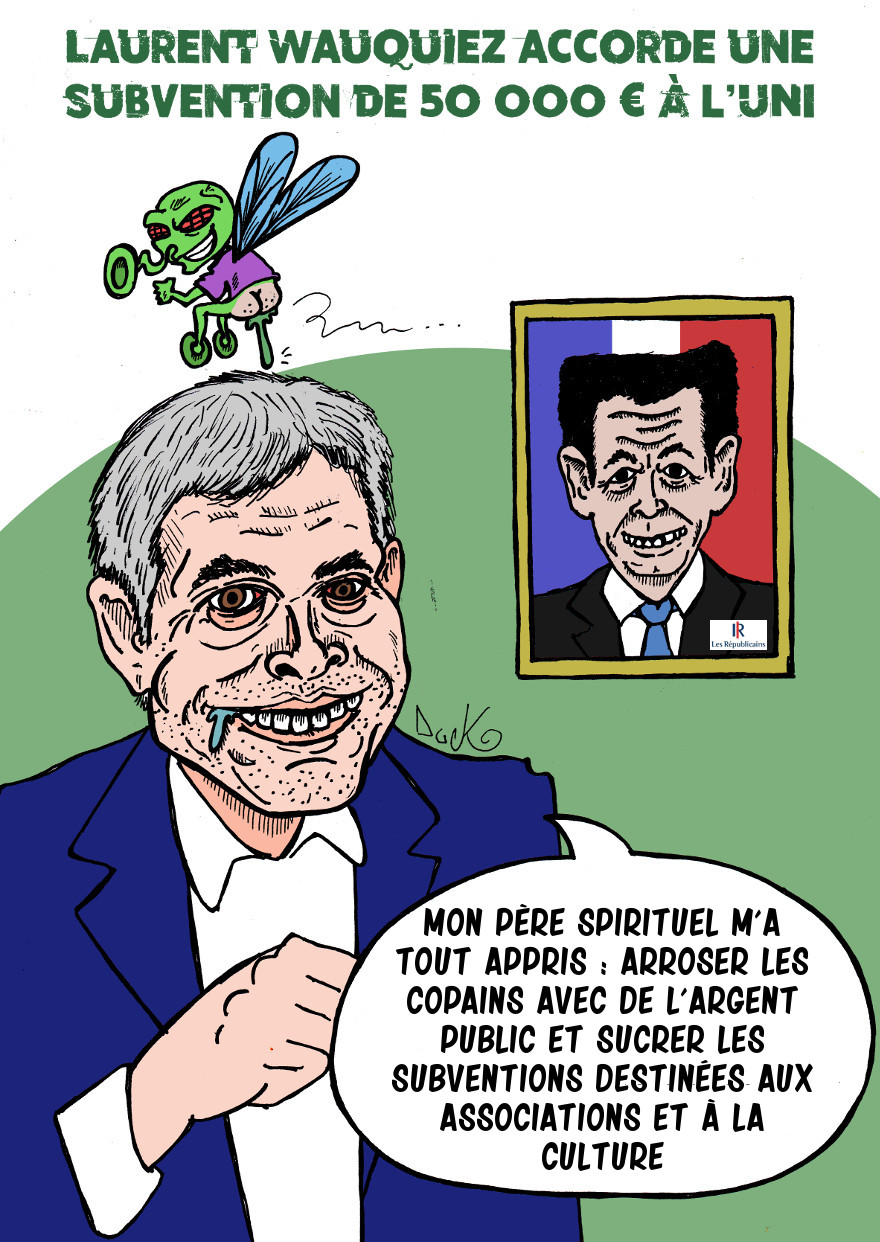 Mais beaucoup plus surprenant, en 2016, sur le site dont vous lisez ce post, j’ai publié deux dessins sur Laurent Wauquiez (que vous retrouverez ci-dessous), en avril et en octobre. En tant qu’artiste et dessinateur de presse, j’ai subi la même année deux contrôles « surprise » de la CAF, tout comme mes recalculs de droits, une semaine après chaque publication.