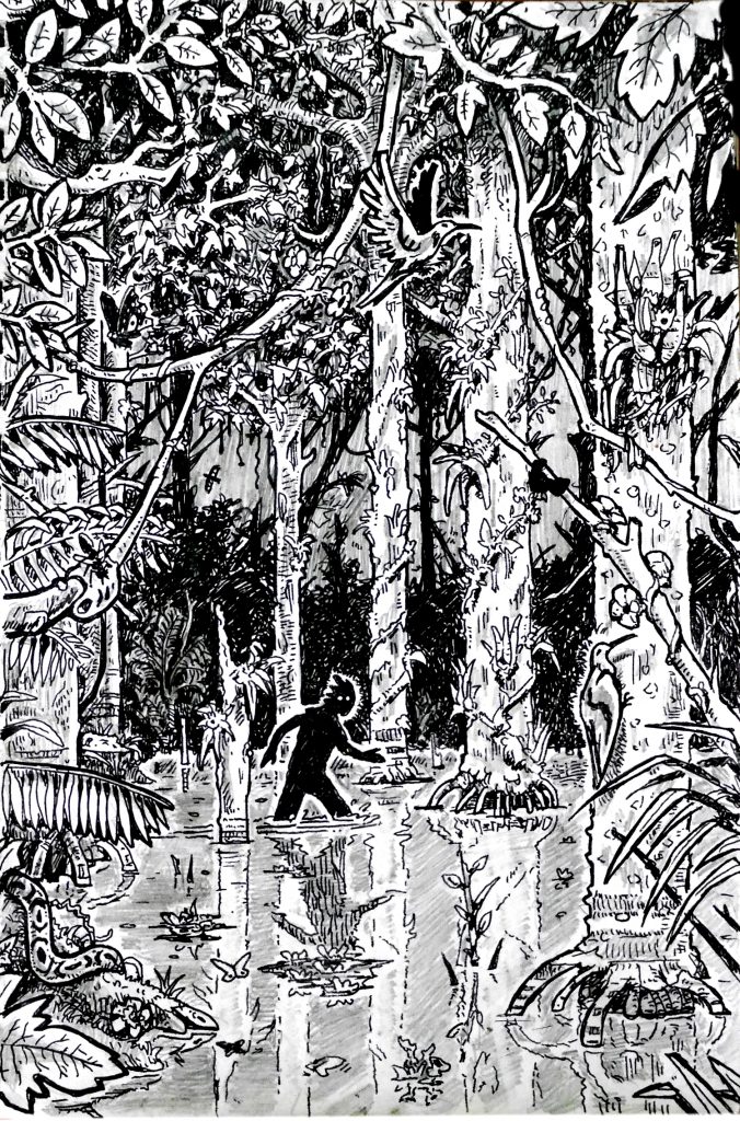 Comme vous le savez, Spone poursuit son road trip en Amazonie péruvienne. Lorsqu’il ne rédige pas d’articles, il nous envoie de magnifiques illustrations inspirées des croyances et des mythes qu’il découvre au fil de son voyage dans ce pays fascinant.